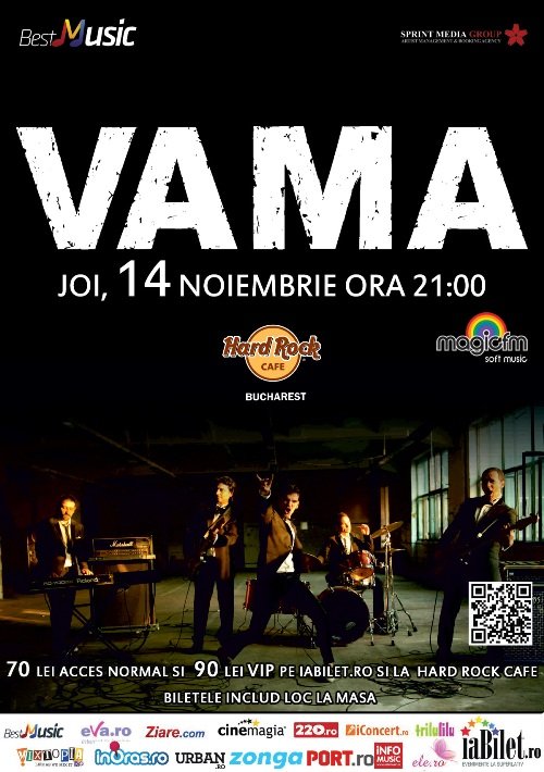 Joi, 14 noiembrie 2013, Bestmusic si Sprint Media ne invita la Hard Rock Cafe la un nou concert VAMA.Noi punem la bataie o invitatie dubla la concurs!