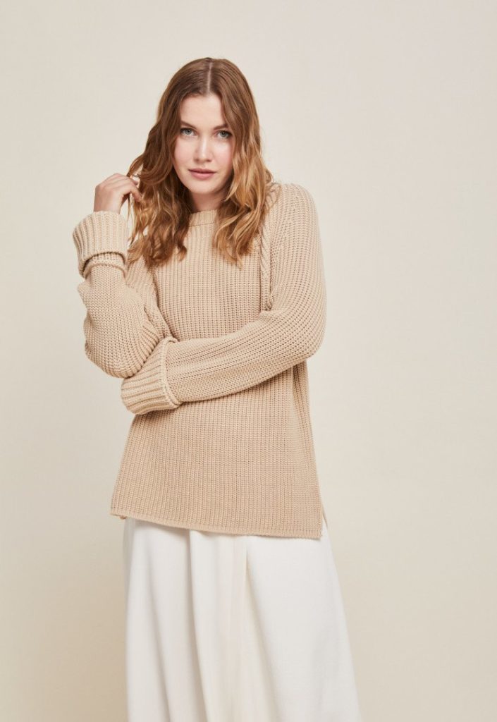 Rochiile tricotate si puloverele variaza in culori dar pastreaza linia de toamna cu nuantele frunzelor – verde inchis, rosu, aramiu, galben pana spre maro. Bineinteles ca variantele clasice de bej si off white raman constant in colectia lor fiind printre cele mai bine vandute.