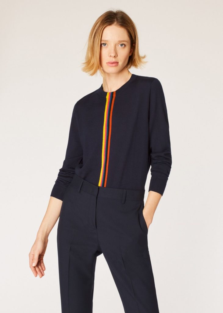 Propunerile de mai jos sunt cele mai atemporale dar pe site-ul Paul Smith veti gasi si tricotaje mai indraznete cu printuri cu animale salbatice, mozaic, motive florale si mesaje inspirationale. Sunt modele care se demodeaza usor asa ca recomandarile raman pe clasic. Mai multe pot fi cumparate aici.