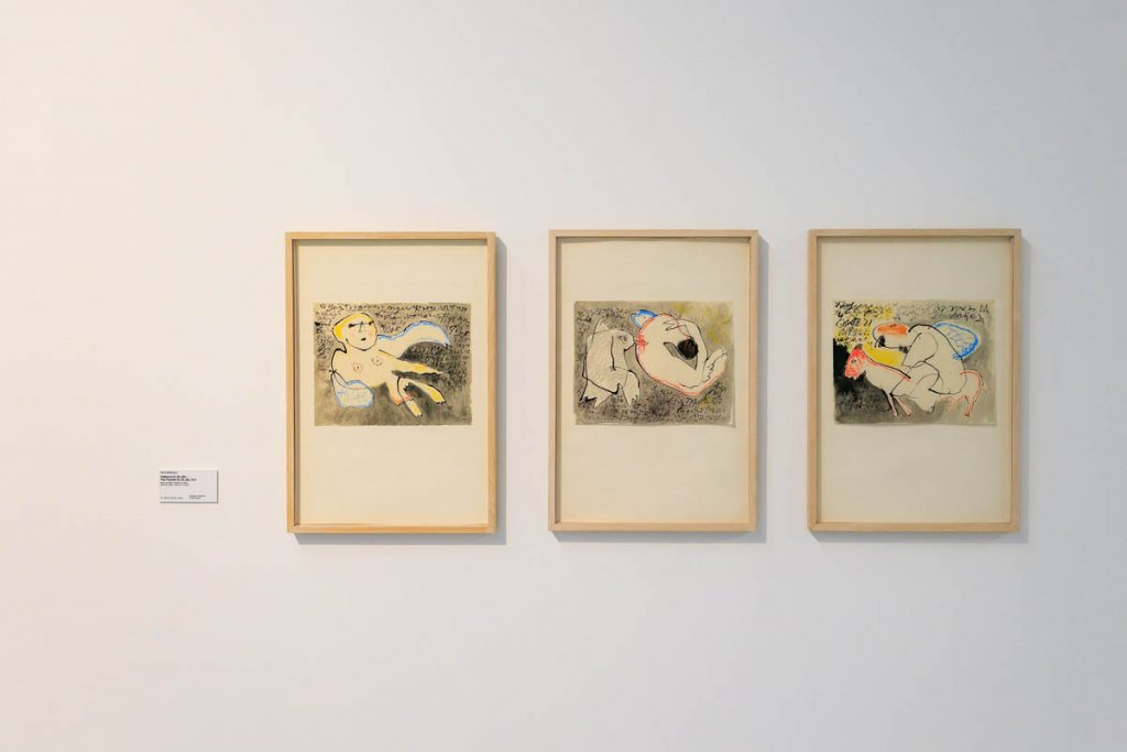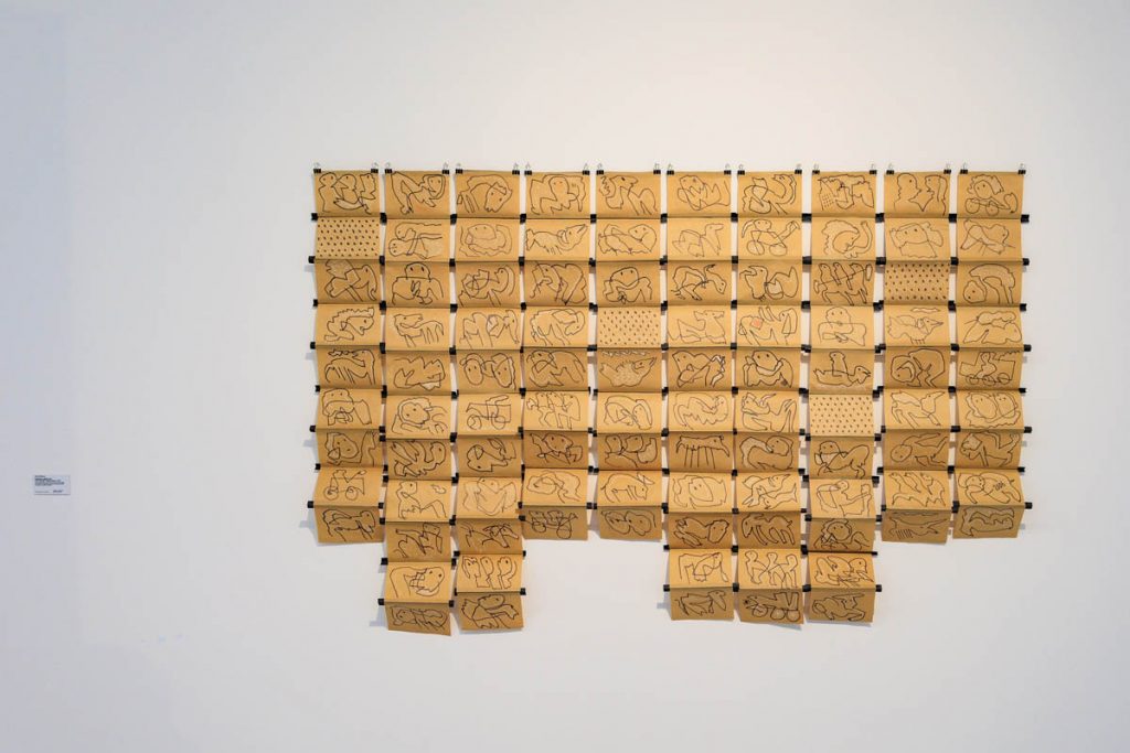 Titlul expozitiei, „La inceput a fost desenul”, reprezinta nu doar unul dintre cele mai puternice enunturi ale Getei Bratescu, ci scoate in evidenta credo-ul sau artistic, oferind un punct de acces intr-o opera in care multiplele medii de lucru se supun logicii experimentului, iar desenul pastreaza, mereu, valentele unui proces mental ordonator, esentializat, pana la linie. Desenul, situat in centrul universului sau artistic, devine proces, scriitura, dans sau cant al liniei – un limbaj flexibil, capabil sa articuleze jocul liber dintre memorie, imaginatie si experiment.
