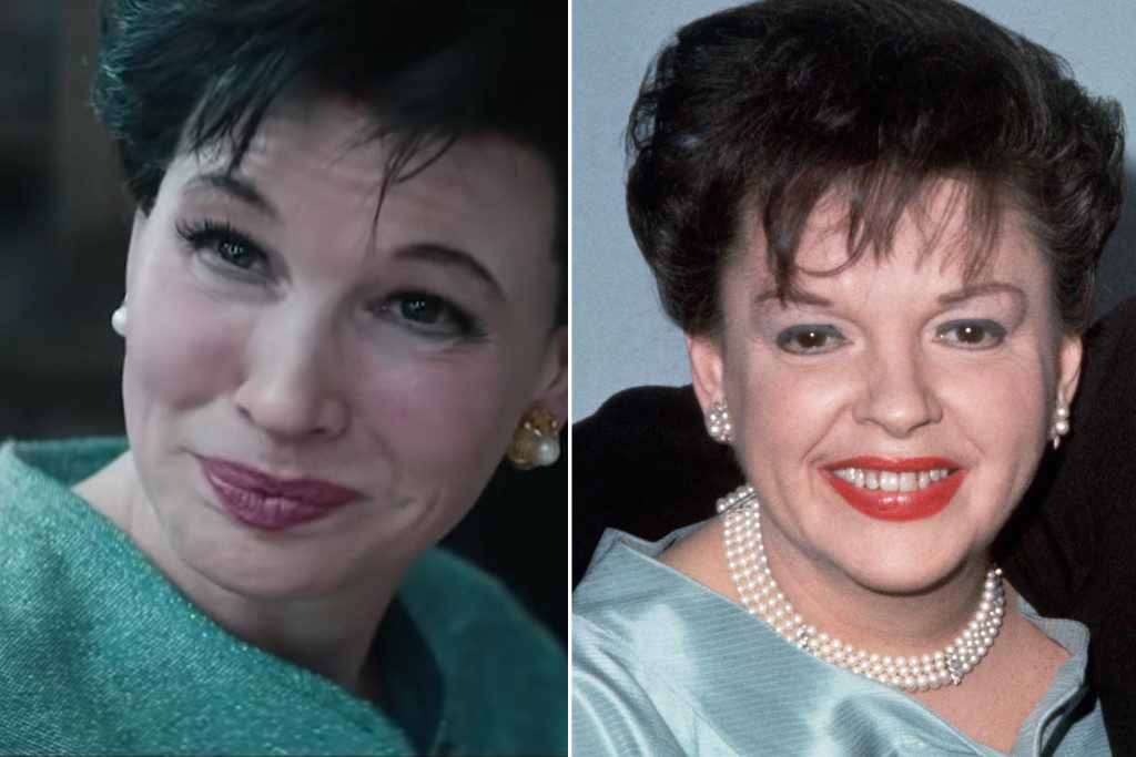 In film, Zellweger are chipul transformat cu ajutorul machiajului si a unor proteze speciale, poarta o peruca neagra, dar nu transformarea fizica impresioneaza (e usor de realizat cu tehnologia de astazi). Ceea ce te surprinde e ca Rene canta, toate performantele din film sunt in regim de live, iar actrita are mimica si atitudinea lui Garland.
