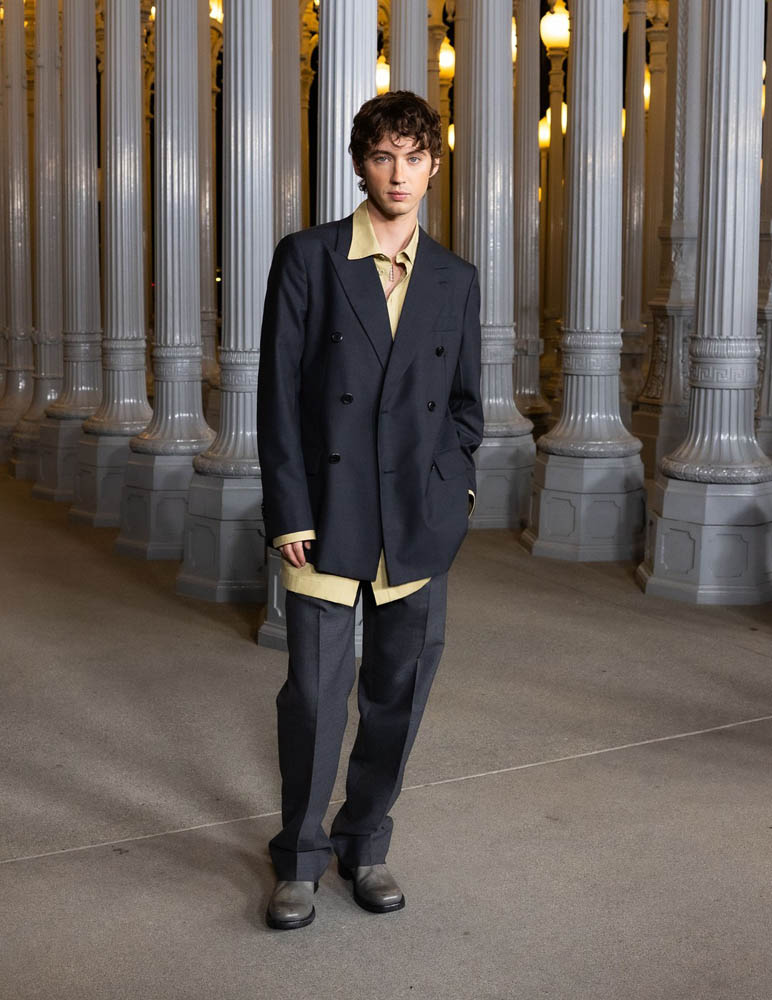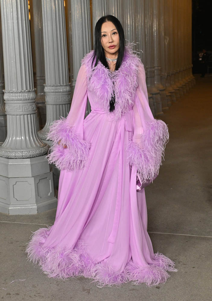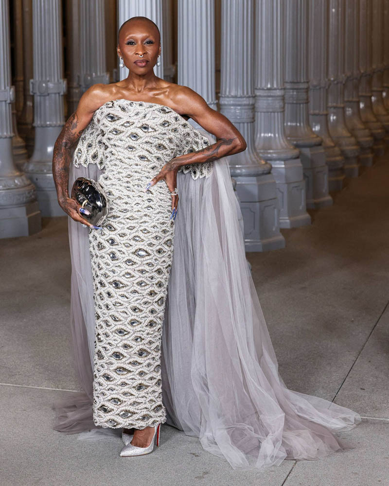 In locul traditionalului covor rosu, gala LACMA profita de instalatia de stalpi luminosi din fata muzeului si ofera imaginilor un fundal memorabil.