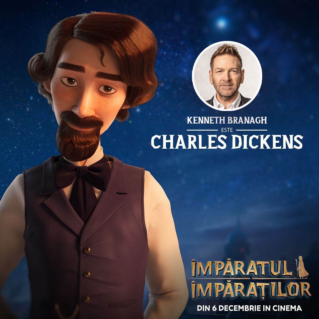 Cunoscut actor si regizor de teatru si film, Kenneth Branagh si-a imprumutat deseori vocea unor personaje din filme de animatie si a narat povesti audio. In filmul KING OF KINGS/ IMPARATUL IMPARATILOR joaca rolul principal, cel al celebrului scriitor Charles Dickens.