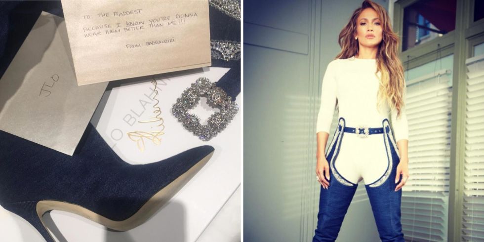 Cizmele, care costa 4350 de dolari si care pot fi achizitionate de pe site-ul ManoloBlahnik.com, au ajuns la Jennifer frumos ambalate si cu un biletel langa, pe care scria „Pentru cea mai tare dintre toti, pentru ca stiu ca o sa le porti mult mai bine decat as face-o eu!!!”
