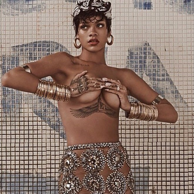 Iar daca va doriti mai multe fotografii cu Rihanna goala, vedeti aici pictorialul realizat pentru revista franceza LUI.