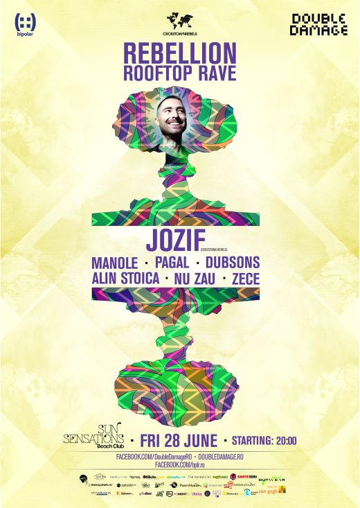 Double Damage & bipolar ne invita la REBELLION ROOFTOP RAVE cu jozif in Sun Sensation Beach Club, vineri, 28 iunie 2013. Noi avem pentru voi 3 invitatii duble, si va mai spunem ca din line-up ii mai regasim pe Pagal, Nu zau, Dubsons, Zece, Alin Stoica sau Manole.