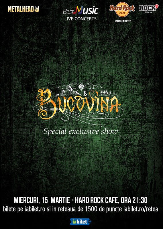 Miercuri, pe 15 martie, de la ora 21:30, in premiera la Hard Rock Cafe, Bucovina va invita la un special exclusive show care nu trebuie scapat! Castigatoare a numeroase premii…