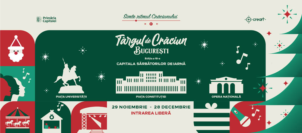 Al treilea eveniment organizat de municipalitate este Bucharest Opera Christmas Market, programat pe esplanada Operei Nationale Bucuresti, in perioada 6 – 28 decembrie, in parteneriat cu Ministerul Culturii si Opera Nationala Bucuresti. Targul completeaza astfel harta oficiala a sarbatorilor, aducand in jurul institutiei de spectacole un spatiu dedicat Craciunului, integrat in tema generala stabilita pentru anul 2025, in care muzica devine elementul comun al celor trei locatii.