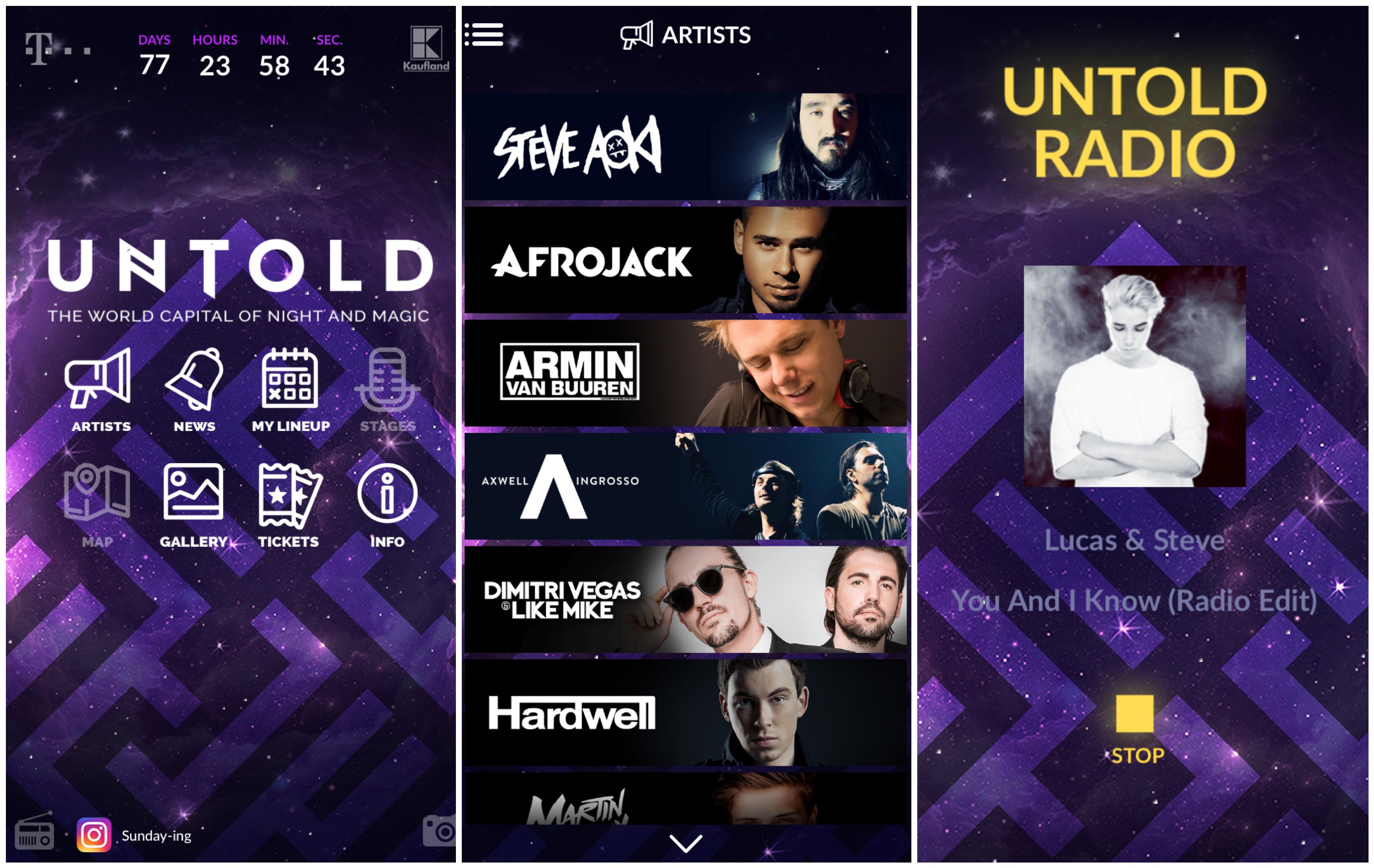 Detalii despre fiecare dintre artistii prezenti la cea de-a treia editie Untold gasiti in aplicatia mobila UNTOLD – disponibila in App Store si Google Play. Tot acolo puteti afla noutati despre festival, galerii foto de la primele doua editii, informatii despre Cluj Napoca sau achizitiona bilete. Pana organizatorii vor anunta desfasuratorul evenimentului pe zile, festivalierii pot asculta Untold Radio, disponibil tot in cadrul aplicatiei mobile.